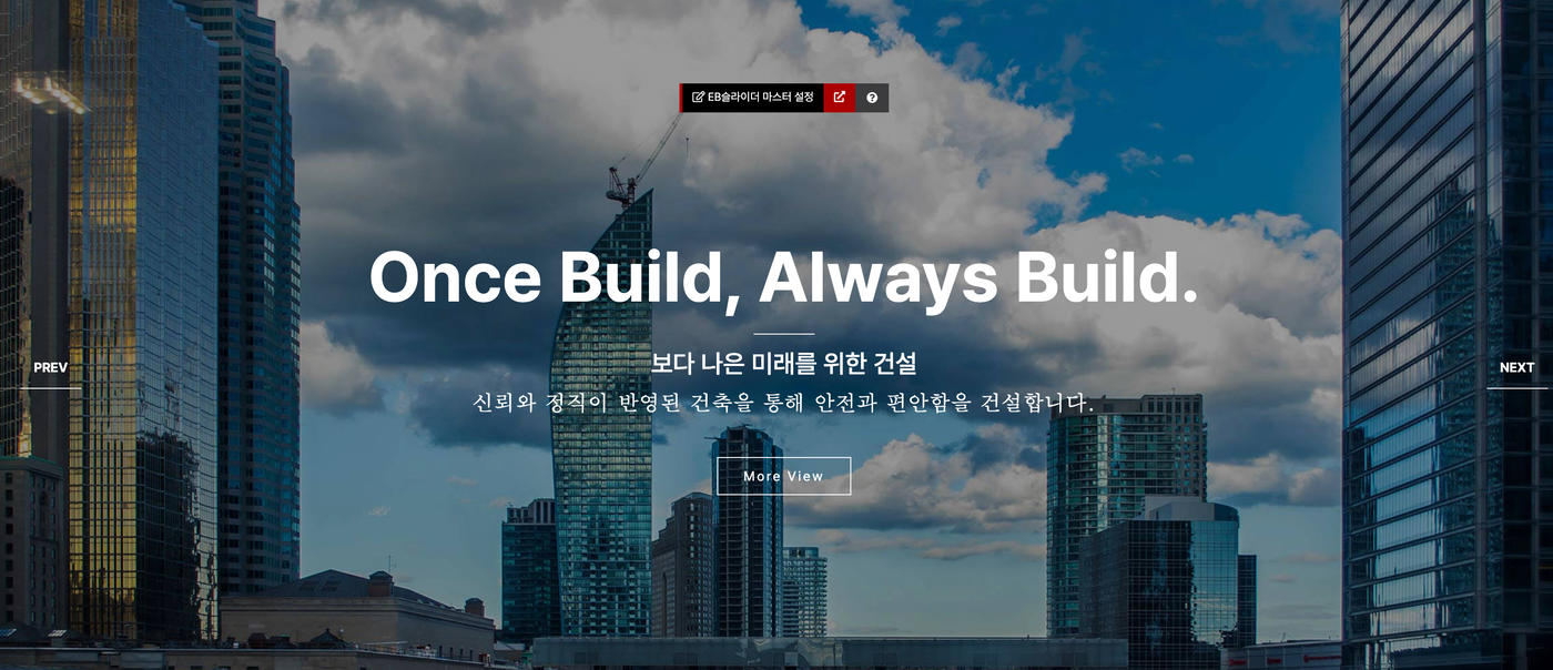 - 테마 설치 후 보여지는 화면은 데모 사이트의 가짜 데이터들로 메뉴, 게시판, EB슬라이더/콘텐츠/최신글등을 사이트 용도에 맞게 설정하기 바랍니다.